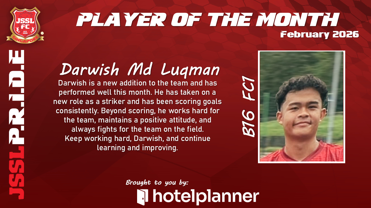 Our JSSL Player of the Month has demonstrated exceptional commitment both on and off the pitch. With consistent performances, strong leadership qualities, and a positive attitude in every training session, they have set the standard for what it means to represent JSSL.
