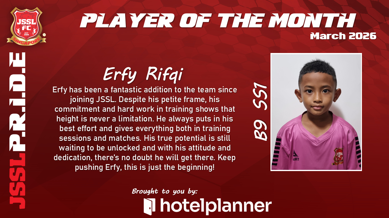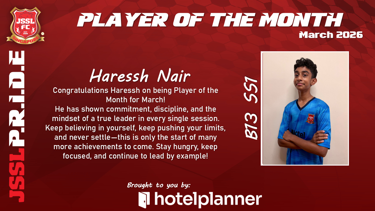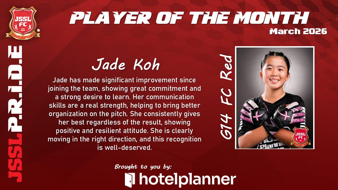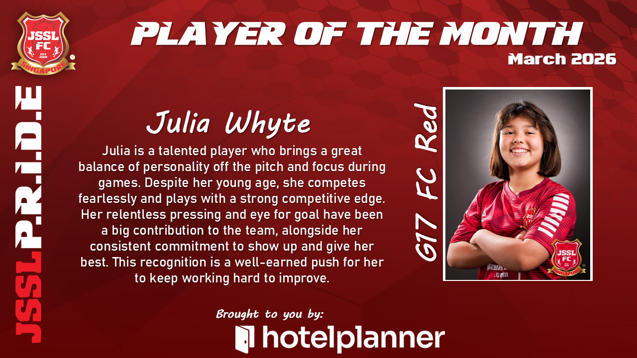 Our JSSL Player of the Month has demonstrated exceptional commitment both on and off the pitch. With consistent performances, strong leadership qualities, and a positive attitude in every training session, they have set the standard for what it means to represent JSSL.