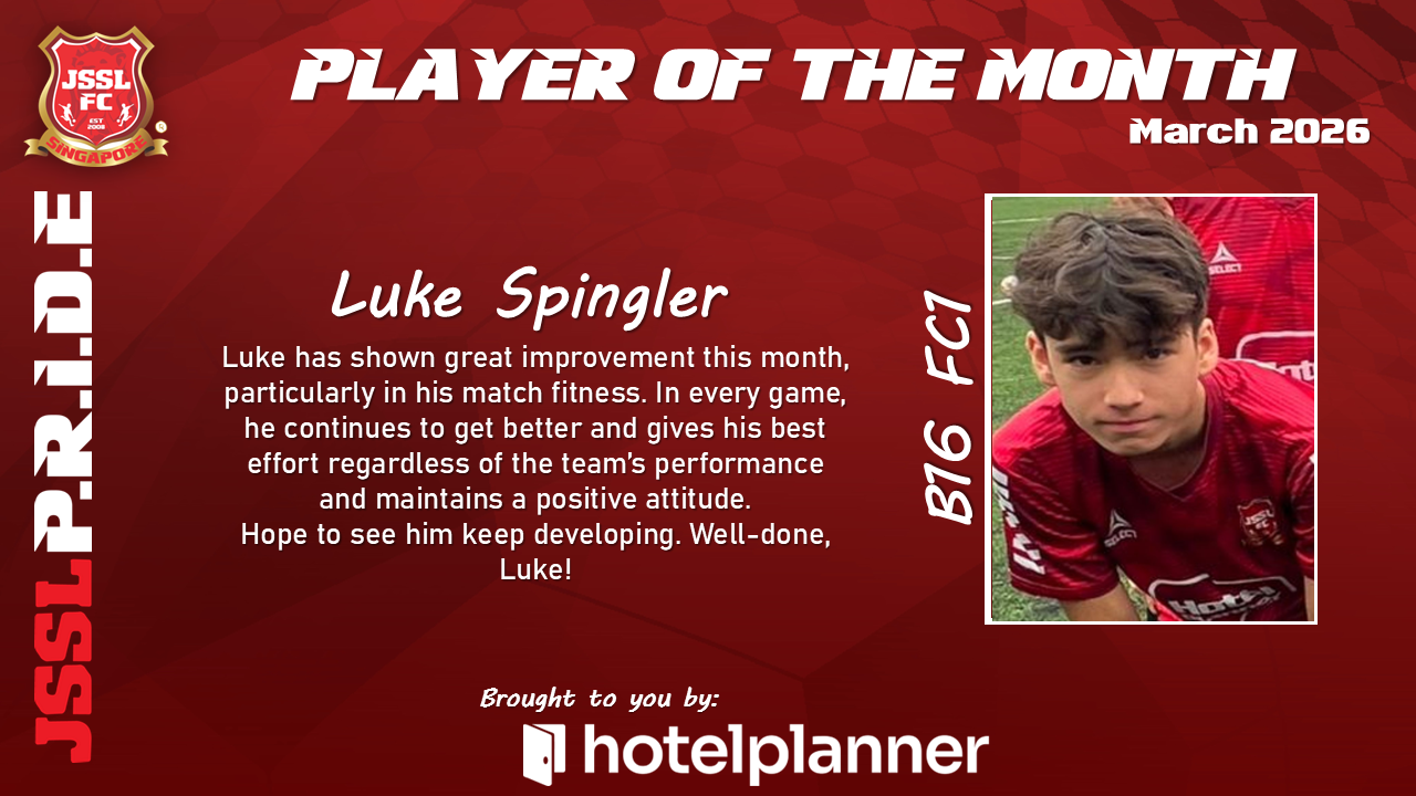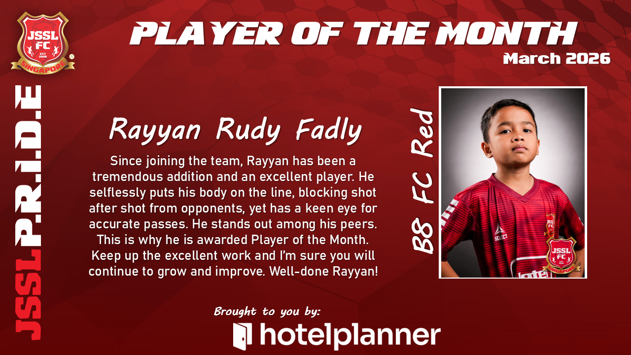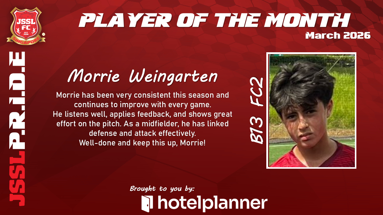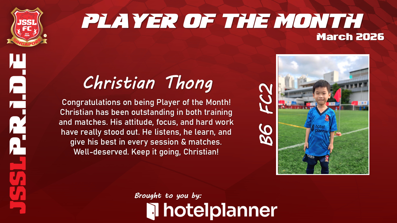 Our JSSL Player of the Month has demonstrated exceptional commitment both on and off the pitch. With consistent performances, strong leadership qualities, and a positive attitude in every training session, they have set the standard for what it means to represent JSSL.