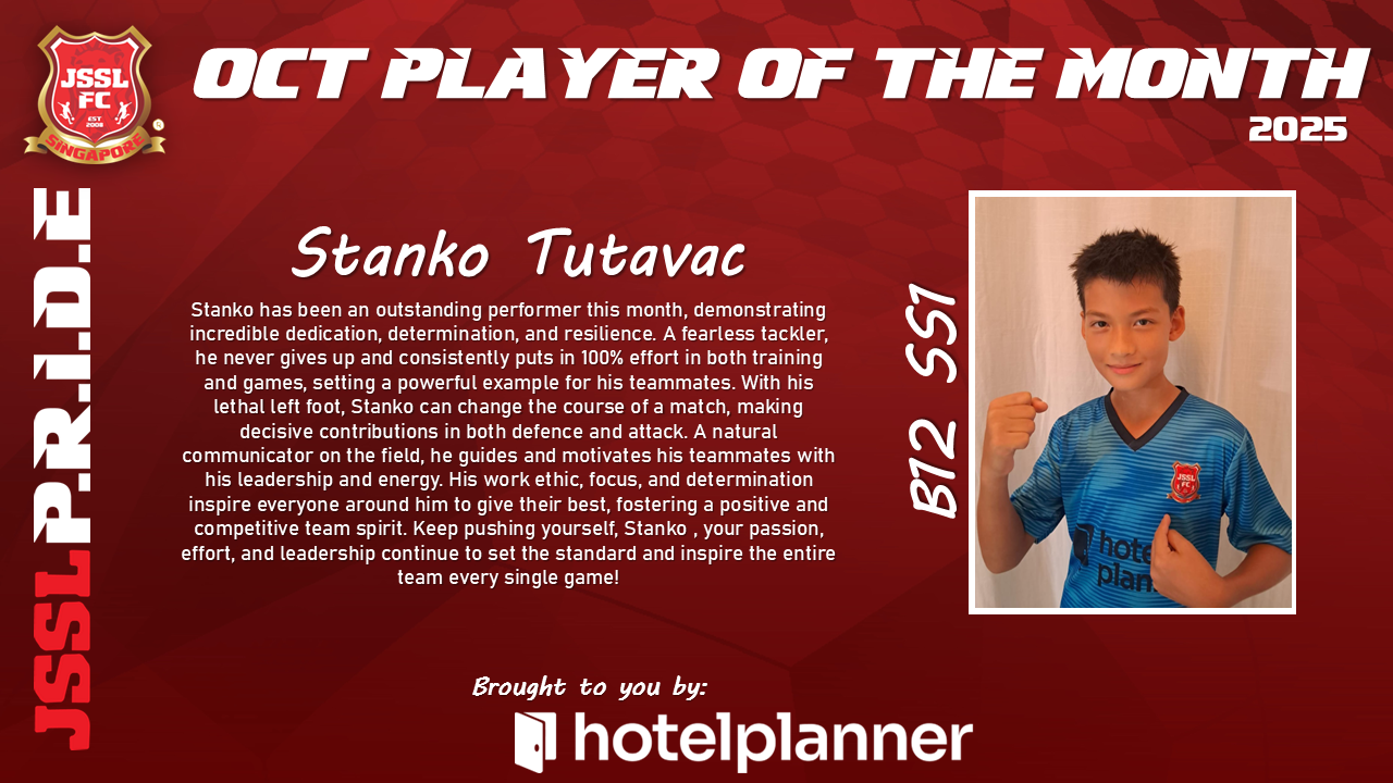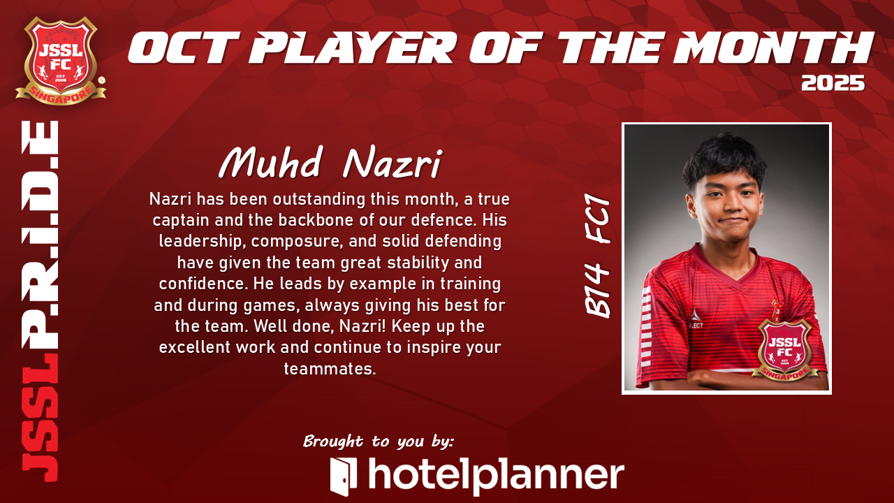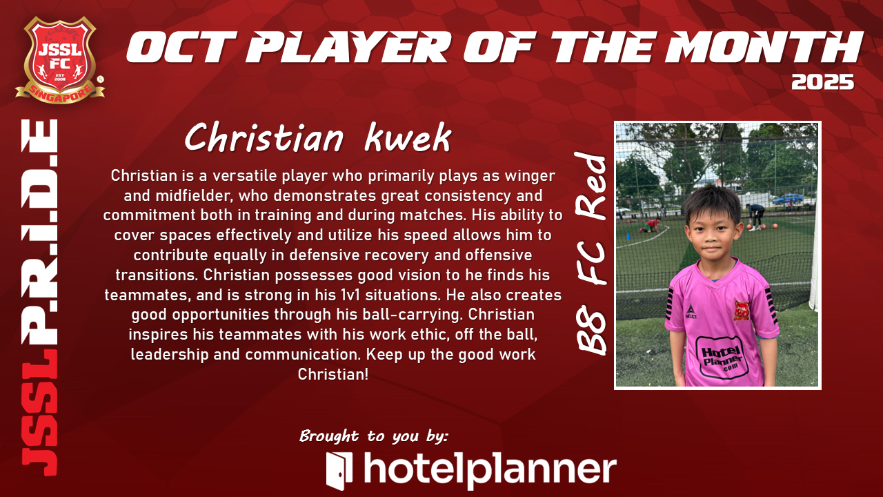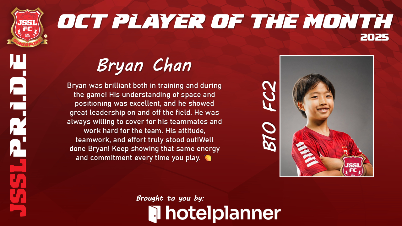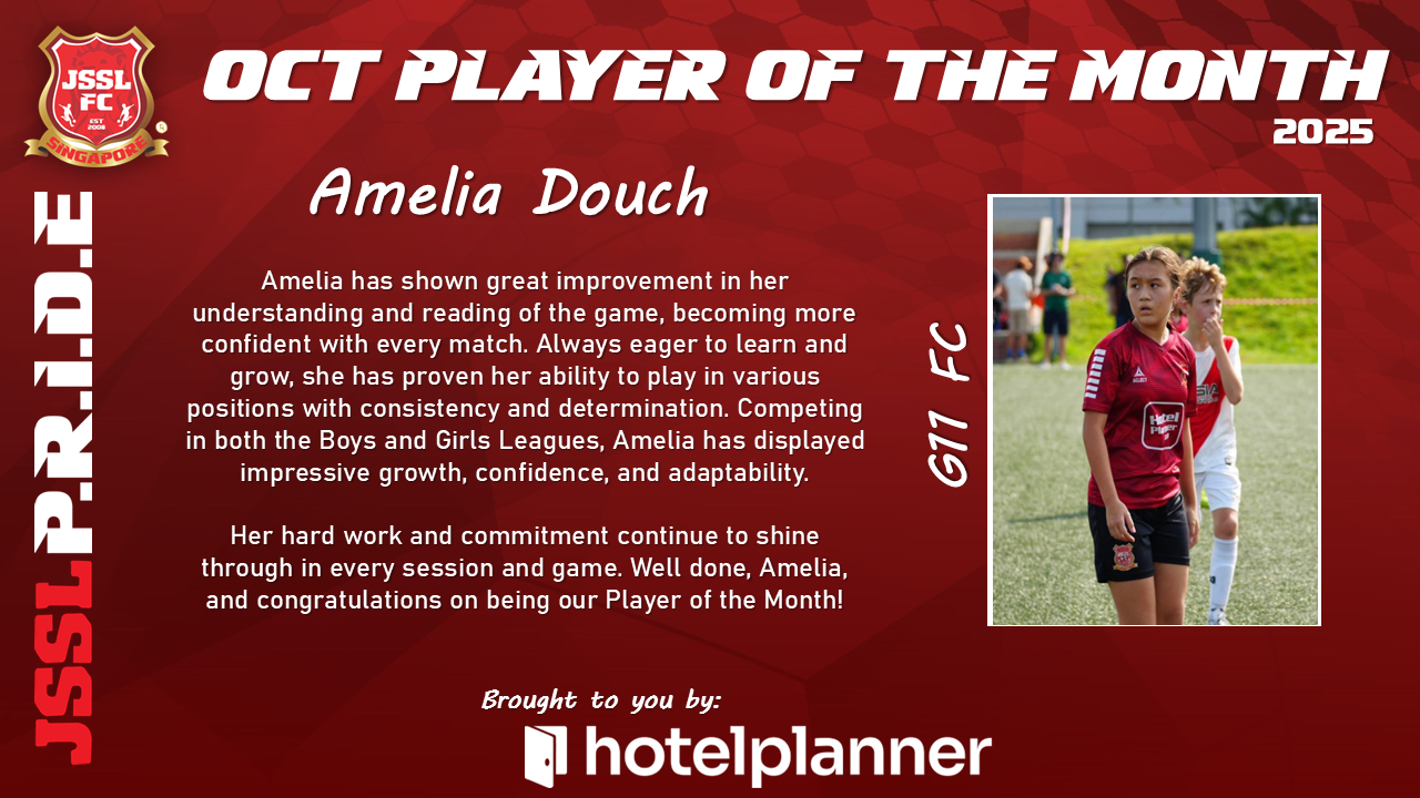 Each month, we recognize players who embody outstanding commitment on the pitch, whilst living out JSSL's P.R.I.D.E values. This award celebrates leaders who inspire others both on and off the field, representing the true spirit of the JSSL family. Their performances showcase all aspects of our JSSL P.R.I.D.E. values. For the new season we are selecting our JSSL Player of the month from each age group and not from each team.